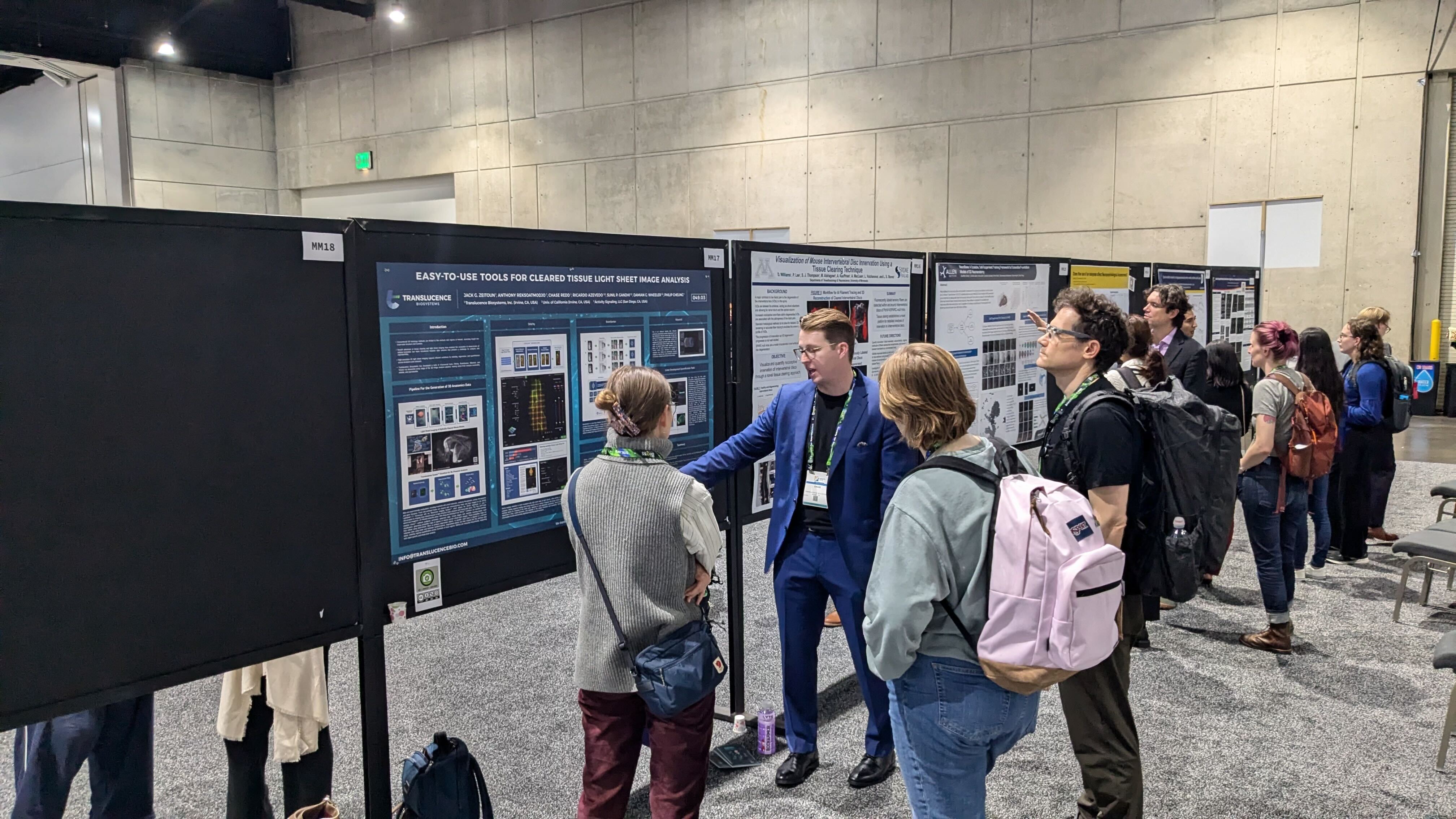 Translucence Biosystems participated in the Society for Neuroscience annual meeting, held November 15–19, 2025, in San Diego, California. The team hosted booth #3224, where they connected with the neuroscience community and discussed how tissue clearing can help accelerate neuroscience research. The team also presented five posters showcasing advancements in high-resolution whole-brain clearing, imaging, and analysis. Together, these posters highlighted tools and techniques that address the limitations of traditional histology, including tissue clearing, light sheet imaging, AI-powered 3D quantification, and cloud-based platforms that enable comprehensive whole-brain and organ-level insights at scale. See an outline of the posters presented below!
